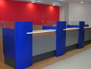 Réceptions, armoires, panneaux luminaires, murs en lambris, bureaux, tables de réunions, etc…